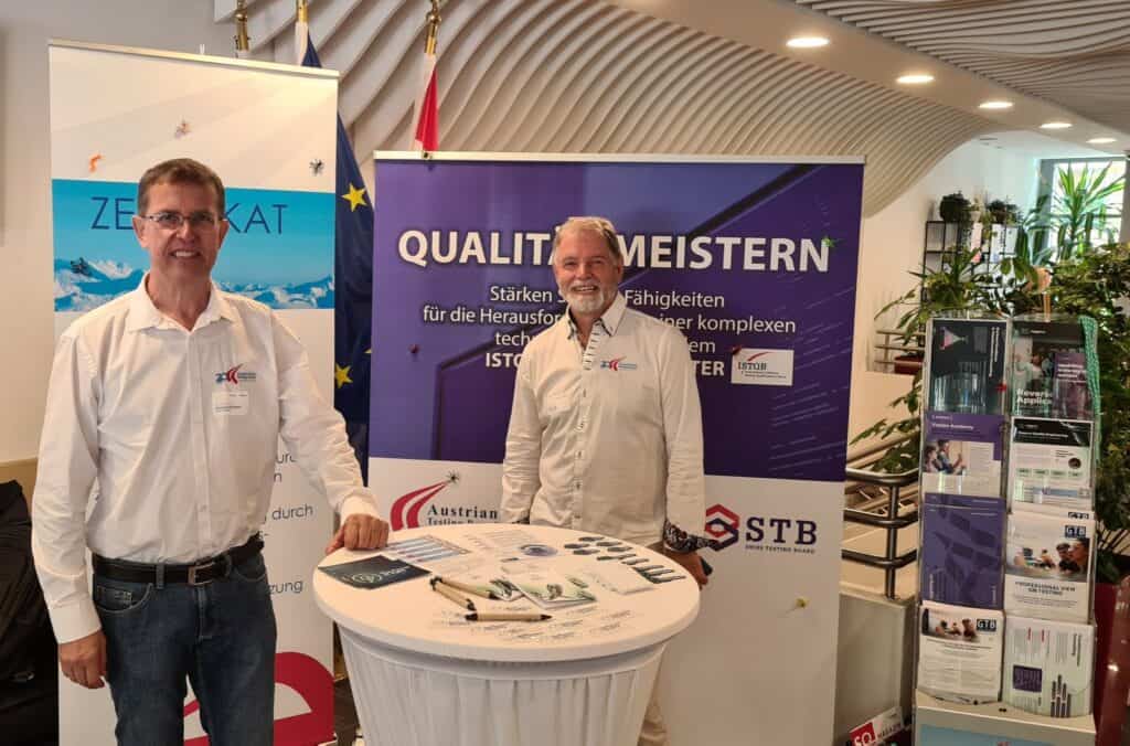 Das ATB war durch Helmut Pichler, Manfred Baumgartner und Stefan Mohacsi mit einem eigenen Messestand direkt am Eingang vertreten. Unser Ziel war es, in der agilen Community mit den Themen Test und Qualitätssicherung präsent zu sein.